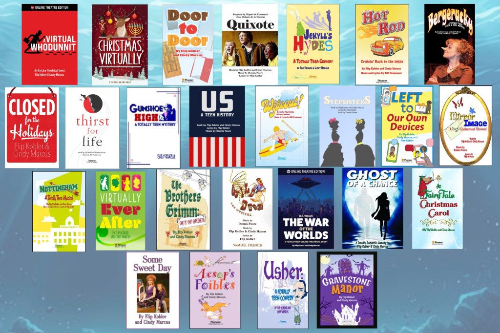 Most of our shows are for the teen and tween market, but we also have many adult shows, (Not adult but grownup shows,) perfect for community theater. When Covid hit, we shifted gears again, writing virtual shows that could be performed over Zoom.